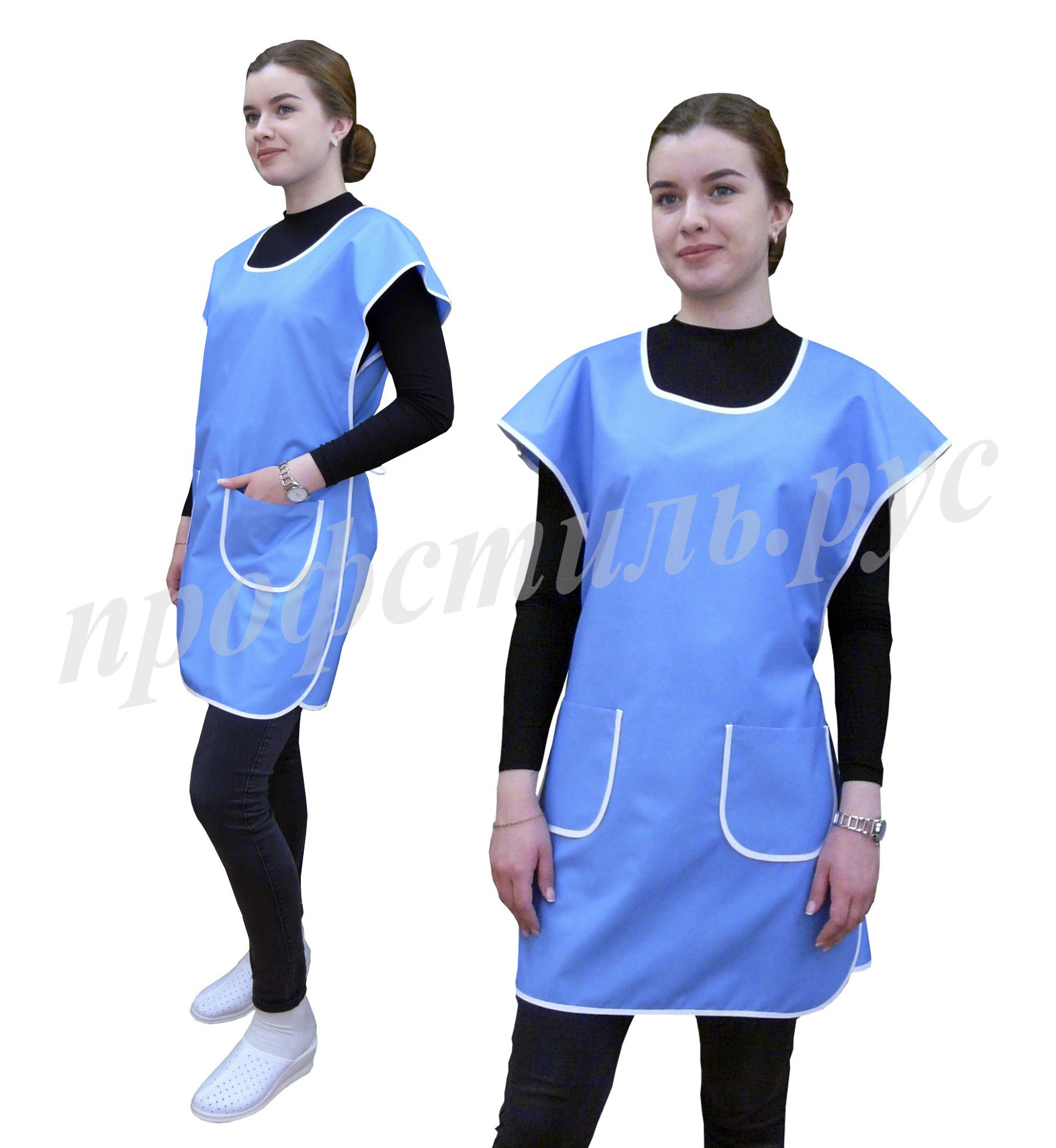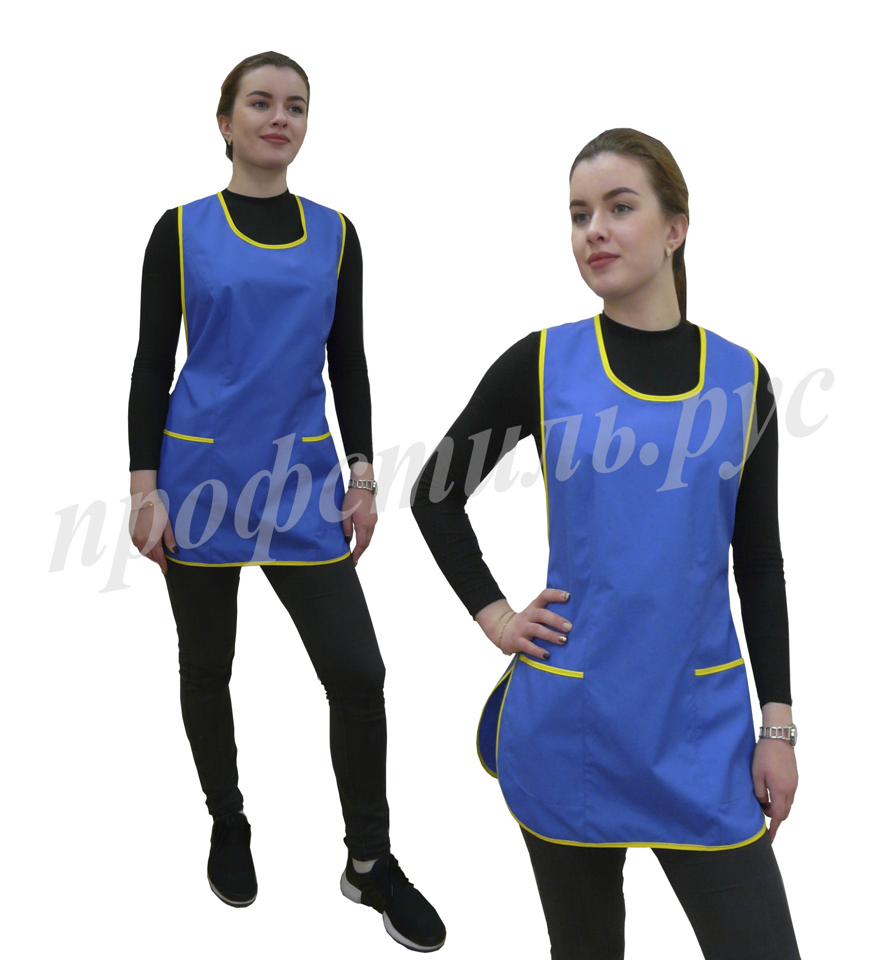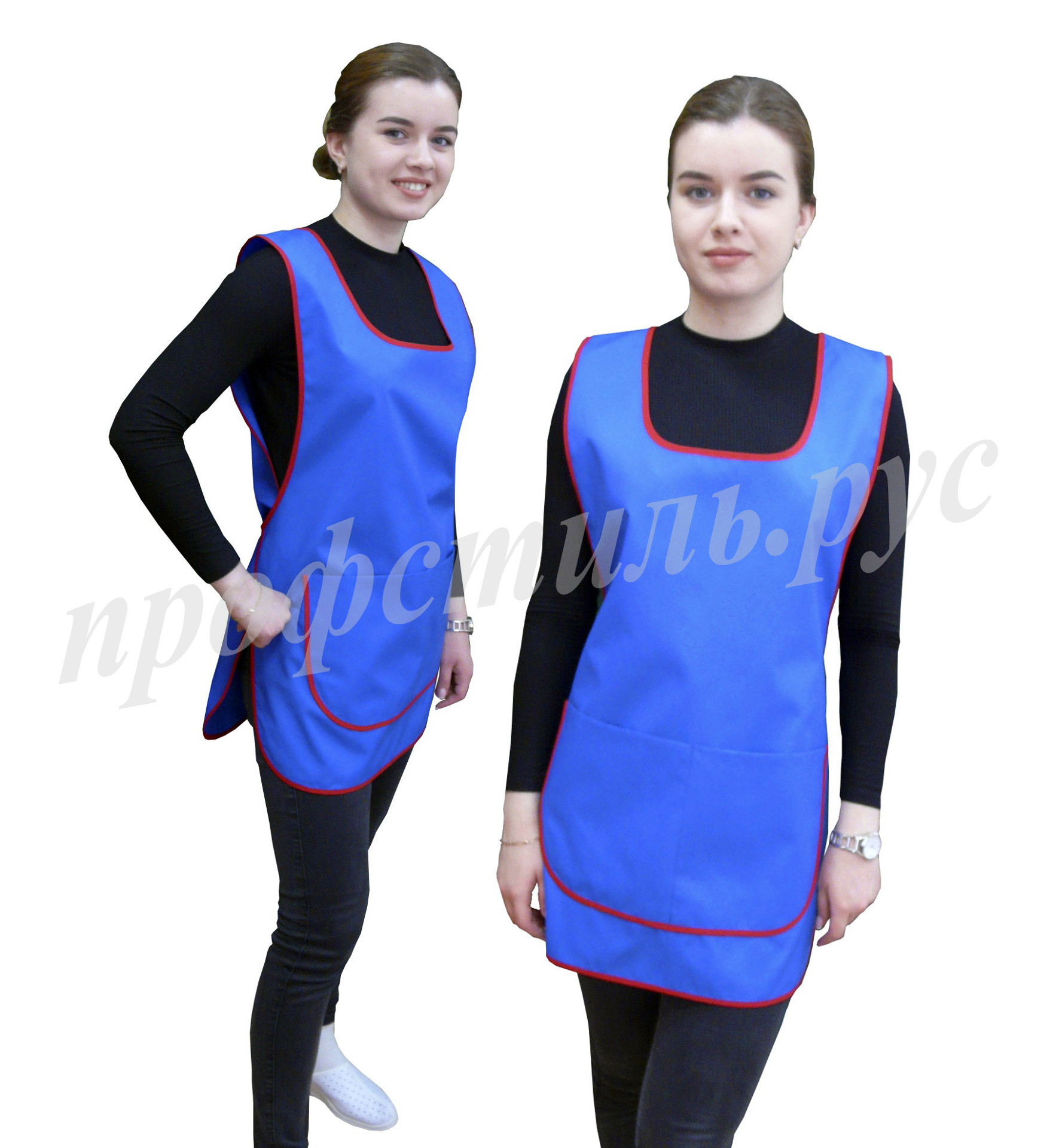 Фартук выполнен с двумя накладными карманами. Модельная особенность: отделочный кант по горизонтальным кокеткам переда и спинки, а также карманам. Цветовая гамма по согласованию с заказчиком. Ткань: 35% хл. +65% п/э, плотность 210 г/кв.м. Размерный ряд: с 40-42 по 64-66
